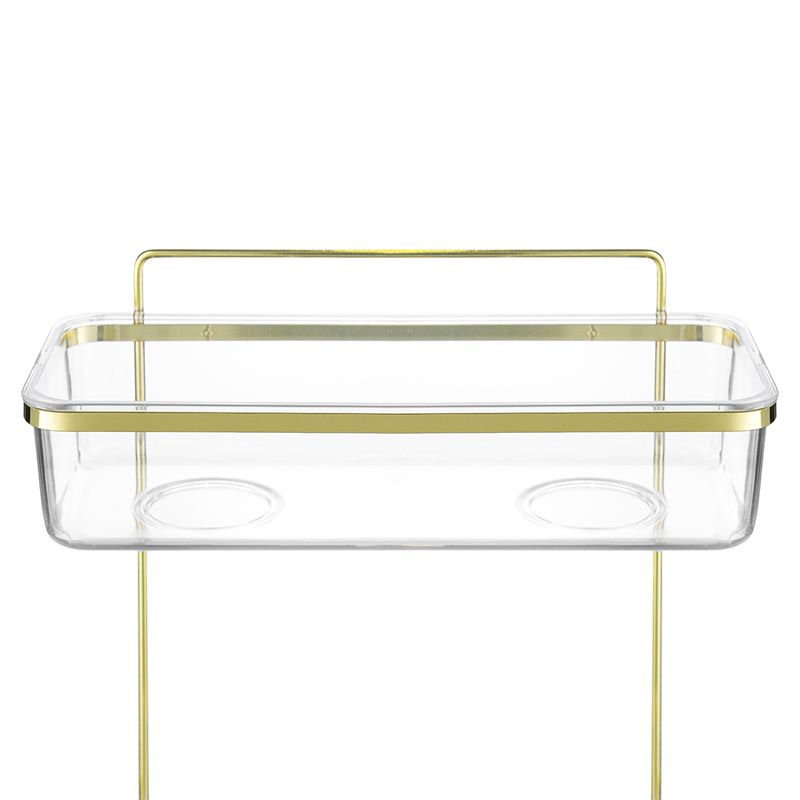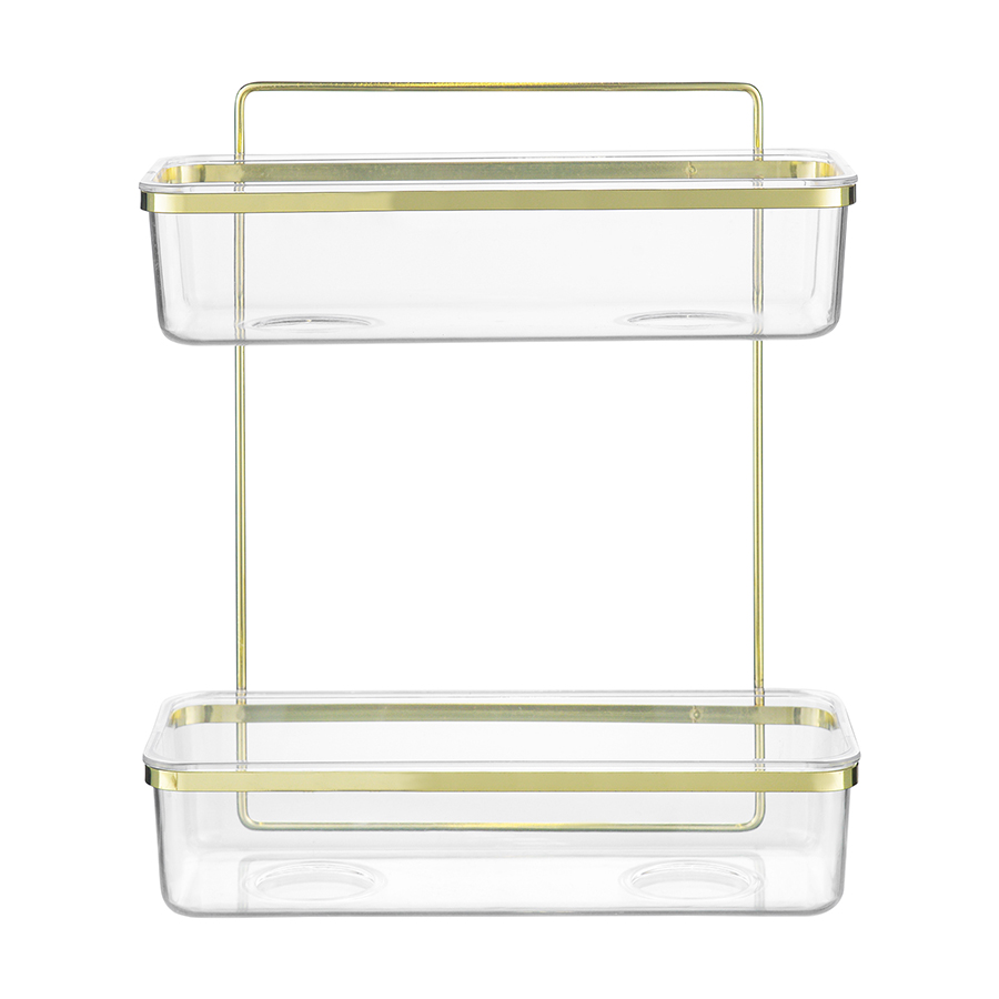 Материал: железо, полистирол. Размеры: 28х12х32 см. Цвет: золотистый. Максимальная нагрузка - до 6 кг, каждый ярус выдерживает вес до 3 кг.