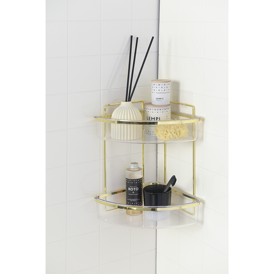 Полка настенная двухъярусная Siv удачно впишется в интерьер любой современной ванной комнаты, создав пространство для удобного размещения душевых принадлежностей: шампуня, мочалки, мыла и др. Модель сочетает в себе минималистичный дизайн и износостойкие материалы. Каркас изготовлен из железной проволоки с антикоррозионным покрытием. Контейнеры для хранения выполнены из практичного полистирола, отличаются хорошей вместительностью. Угловая конфигурация позволяет экономить полезное пространство. Полка легко монтируется к стене с помощью многоразовых силиконовых наклеек Magic-loc. Не требуется сверление. Крепления идут в комплекте.