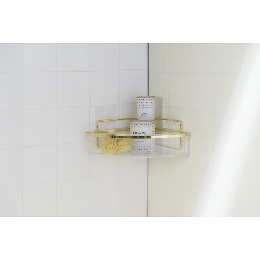 Полка настенная Siv удачно впишется в интерьер любой современной ванной комнаты, создав пространство для удобного размещения душевых принадлежностей: шампуня, мочалки, мыла и др. Модель сочетает в себе минималистичный дизайн и износостойкие материалы. Каркас изготовлен из железной проволоки с антикоррозионным покрытием. Контейнер для хранения выполнен из практичного полистирола, отличается хорошей вместительностью. Угловая конфигурация позволяет экономить полезное пространство. Полка легко монтируется к стене с помощью многоразовых силиконовых наклеек Magic-loc. Не требуется сверление. Крепления идут в комплекте.