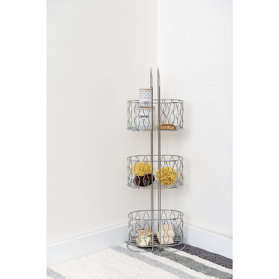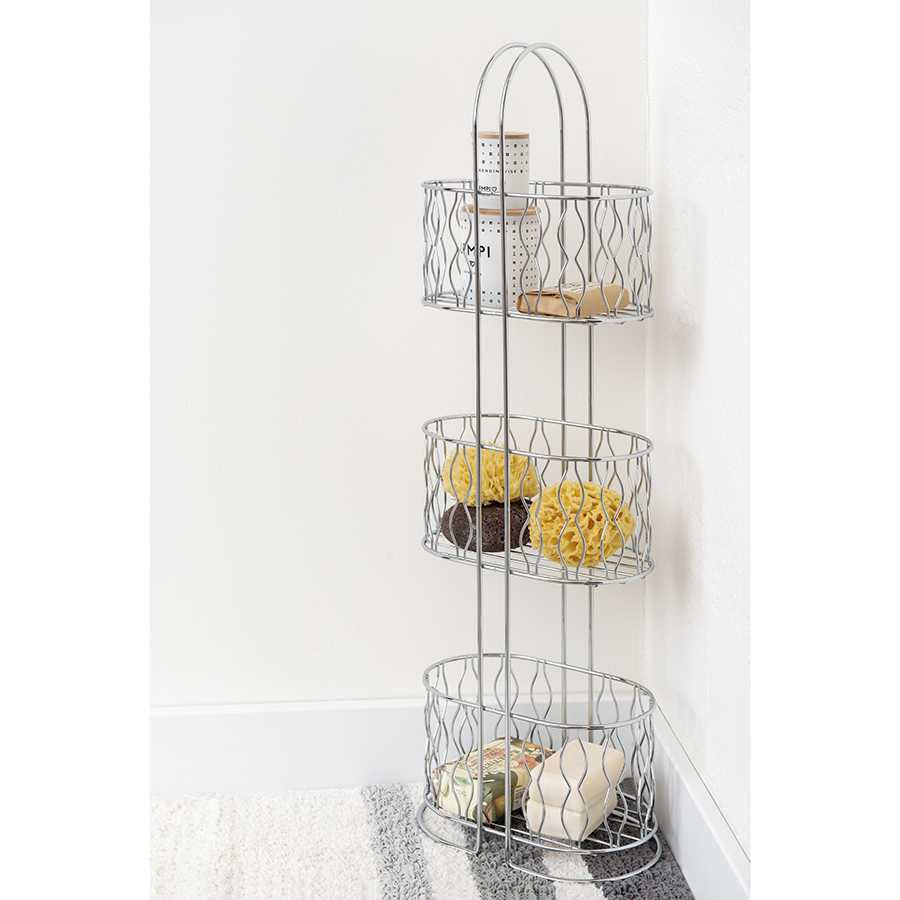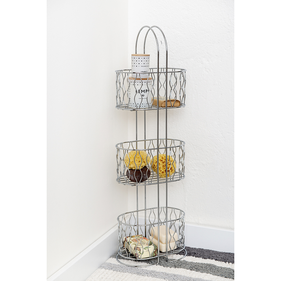 Трехъярусная полка Stig позволяет держать необходимые средства гигиены под рукой во время принятия душа. Железная конструкция с хромированным покрытием не боится воздействия влаги, устойчива к появлению коррозии. Каждое отделение имеет решетчатое дно и высокие бортики, что обеспечивает удобное размещение флаконов любых размеров. Благодаря лаконичному дизайну модель органично смотрится в интерьерах ванных комнат с различным оформлением.