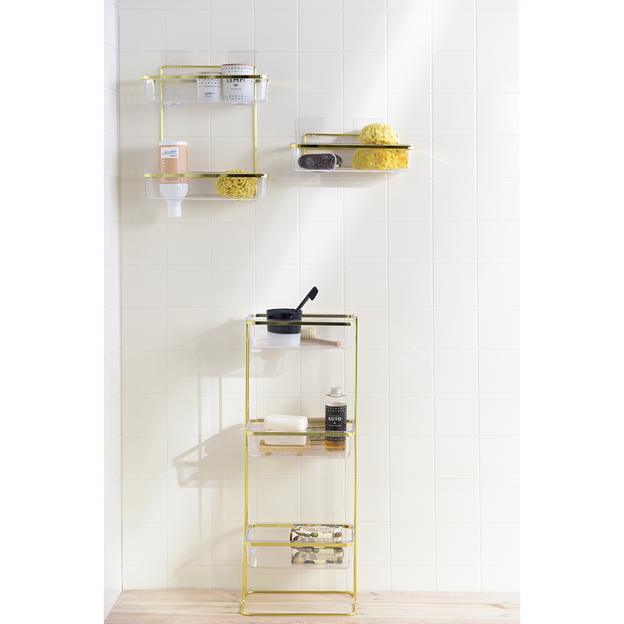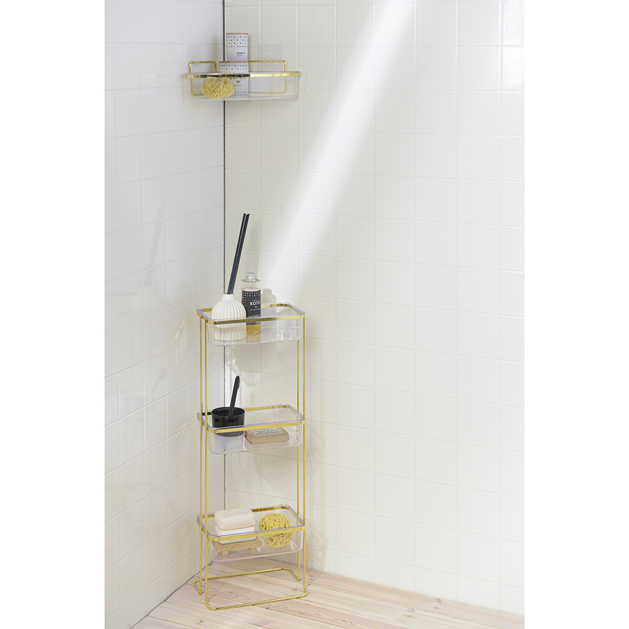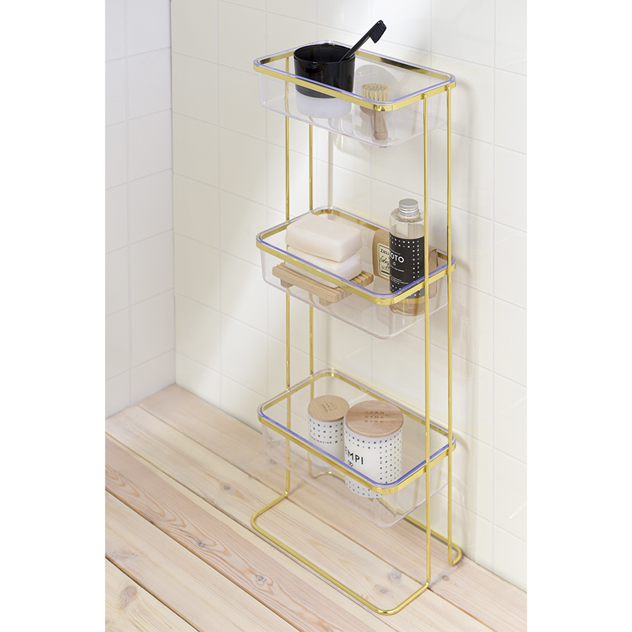 Полка напольная Siv удачно впишется в интерьер любой современной ванной комнаты, создав пространство для удобного размещения необходимых предметов гигиены. Модель сочетает в себе минималистичный дизайн и износостойкие материалы. Каркас изготовлен из железной проволоки с антикоррозионным покрытием. Каждое из трех отделений имеет вид небольшого контейнера из полистирола. Глубокие полки отличаются хорошей вместительностью, что позволяет одновременно хранить на них средства по уходу за телом, лицом и волосами, а также мочалку, мыло и др.