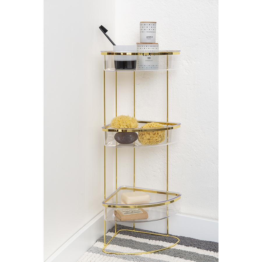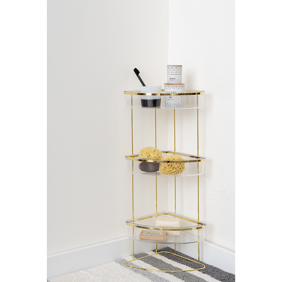 Полка напольная Siv удачно впишется в интерьер любой современной ванной комнаты, создав пространство для удобного размещения необходимых предметов гигиены. Модель сочетает в себе минималистичный дизайн и износостойкие материалы. Каркас изготовлен из железной проволоки с антикоррозионным покрытием. Каждое из трех отделений имеет вид небольшого контейнера из полистирола. Глубокие полки отличаются хорошей вместительностью, что дает возможность одновременно хранить на них средства по уходу за телом, лицом и волосами, а также мочалку, мыло и др. Угловая конструкция позволяет экономить полезное пространство.