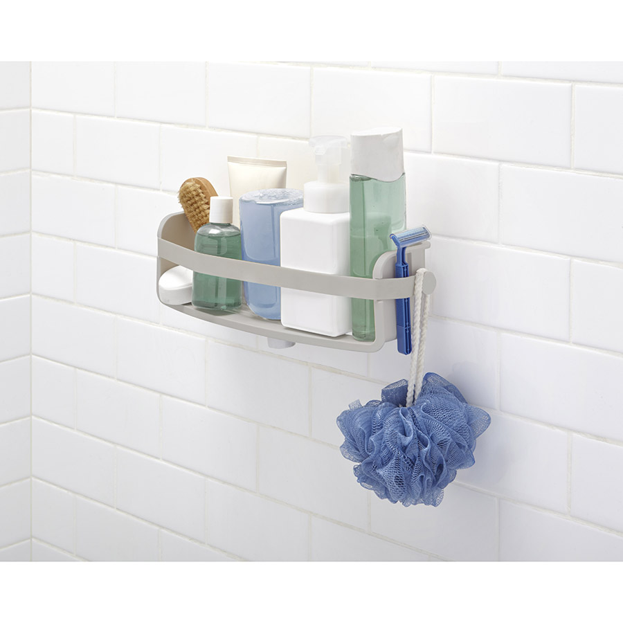 Компактная полочка для душа Flex вмещает всё самое необходимое и не занимает много места.