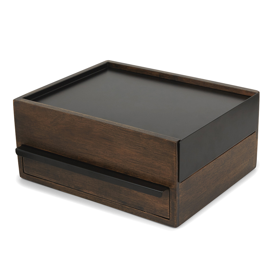 Шкатулка позаботится о ваших украшениях. Благородное сочетание натурального темного дерева и металла с черным матовым покрытием делает шкатулку отличным подарком как для женщины, так и для мужчины.