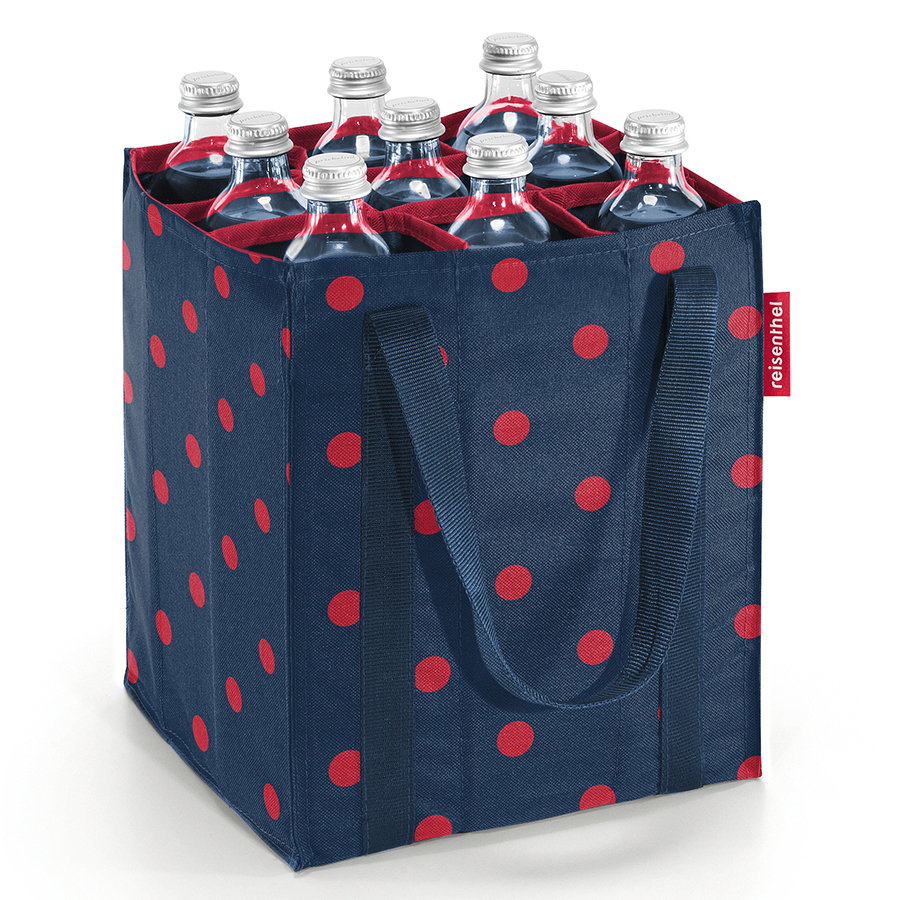 9 отделений для бутылок объемом до 0,75 литра. По бокам две ручки для переноски, соединяемые между собой липучкой. Сумка легко складывается для компактного хранения.