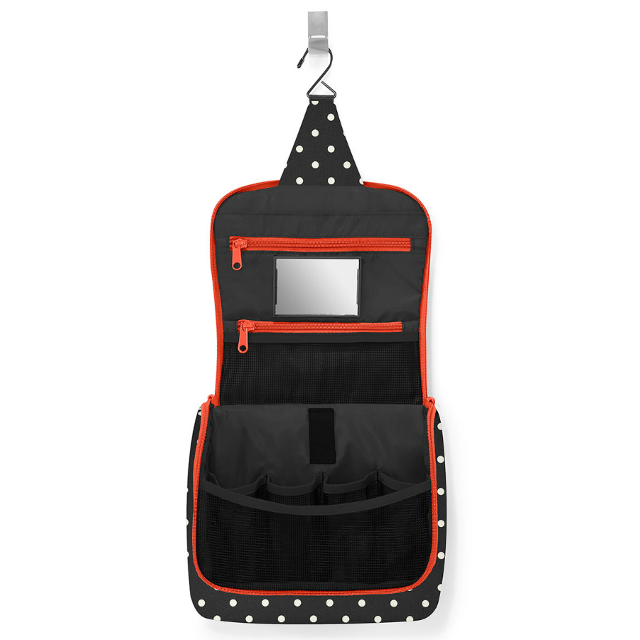 Ощущение комфорта и уюта должно быть везде и всегда. Даже в небольшом гостиничном номере. Закрепите вместительный органайзер Toiletbag с помощью карабина и все необходимые аксессуары, косметика и средства гигиены будут в лёгком доступе и на виду. Специальный крючок позволяет подвесить её в ванной комнате, тем самым облегчить доступ к необходимым мелочам. Внутри сумки 1 основное отделение и 4 кармана. На крышке с внутренней стороны 2 кармана на молнии. Так же можно прикрепить зеркало на липучку или снять его.