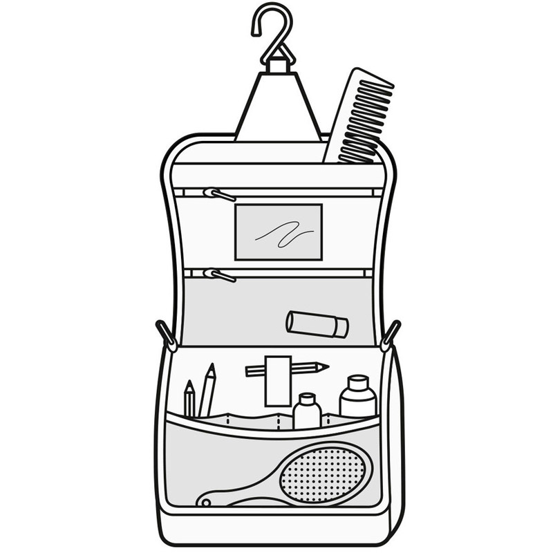 Отличная сумка для путешественников, которая позволяет взять с собой всё необходимое и даже больше. Специальный крючок позволяет подвесить её в ванной и облегчить доступ к косметике и аксессуарам.