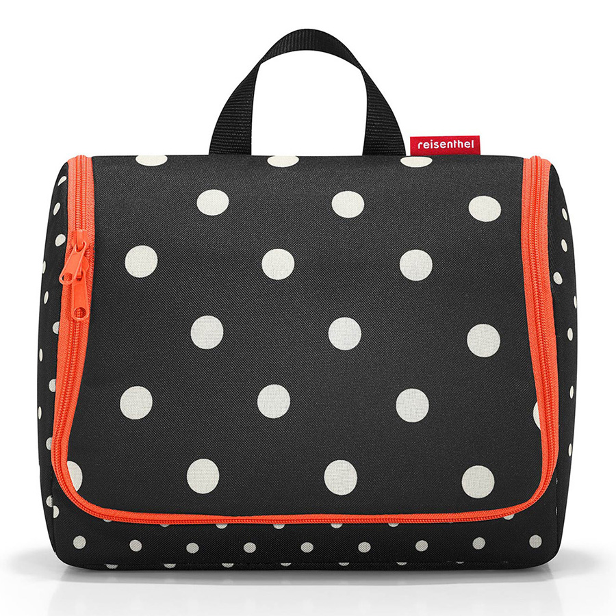 Внутри сумки 1 основное отделение и 4 кармана. Дополнительный карман на молнии в передней части. На крышке с внутренней стороны 3 кармана на молнии. Так же можно прикрепить зеркало на липучку или снять его. Специальный крючок позволяет подвесить ее в ванной и облегчить доступ к косметике и аксессуарам. Размер в сложенном состоянии: 25 х 28 х 10 см. В разложенном: 59 х 28 х 9 см. Объем - 4 литра.