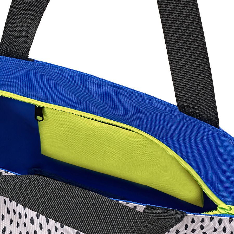 Удобные широкие лямки распределяют нагрузку на плече. Сумка застегивается на надежную молнию. Внутри – кармашек на молнии для мелочей. Сумка имеет специальное широкое днище для большей вместимости. Материал – прочный водоотталкивающий полиэстер, выполненный из переработанных пластиковых бутылок. Объем – 15 л.