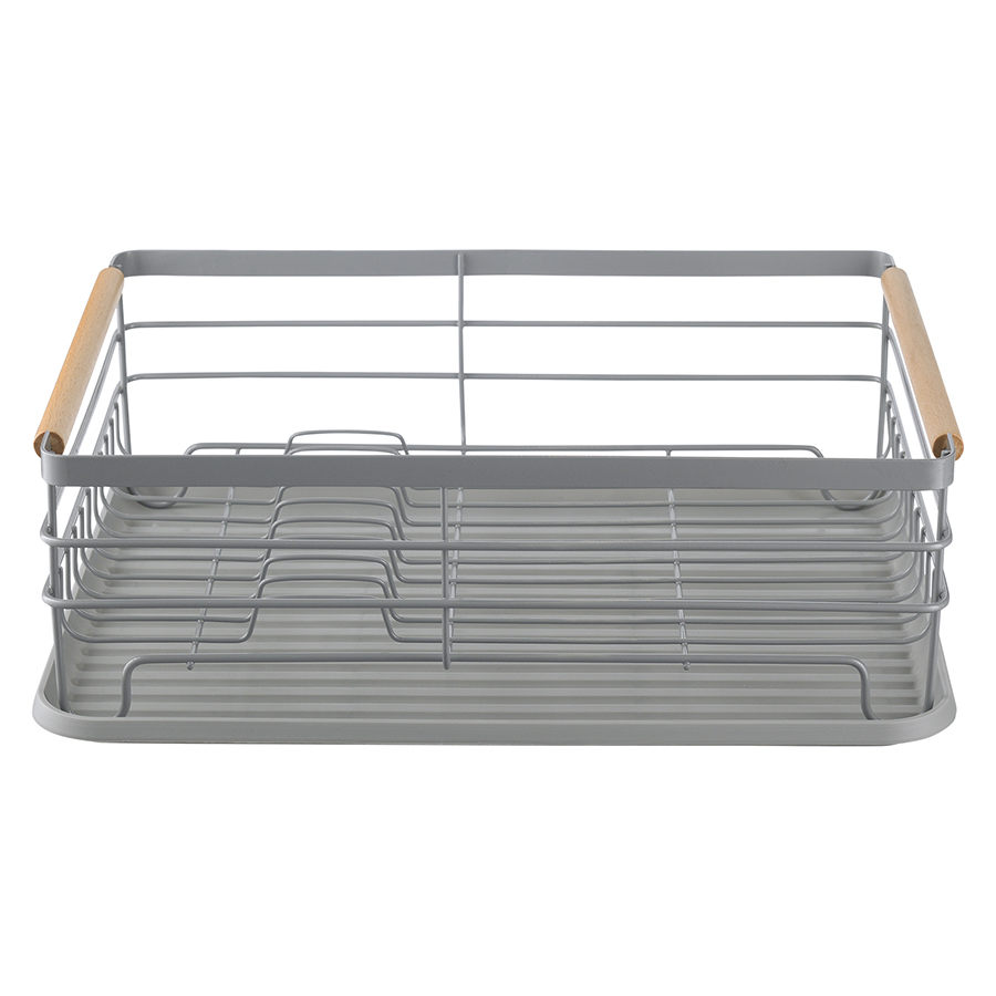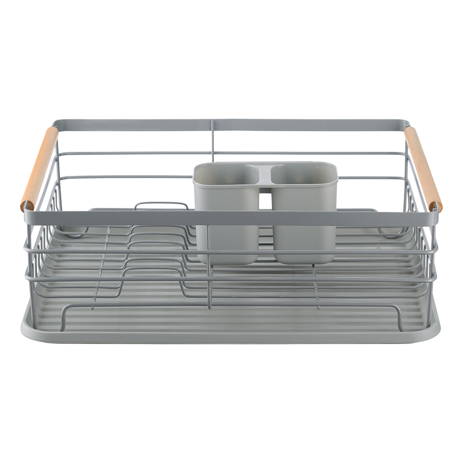 Сушилка Granli представляет собой эргономичную конструкцию с отделениями для посуды и кухонных принадлежностей. Каркас имеет вид железной сетки со специальными изгибами, позволяющими удобно разместить тарелки и другие емкости. Поддон выполнен из практичного пластика, который легко очищается от загрязнений. Предусмотрены специальные съемные контейнеры для столовых приборов, на дне которых имеются отверстия для слива воды. Сушилку легко перемещать благодаря деревянным ручкам.