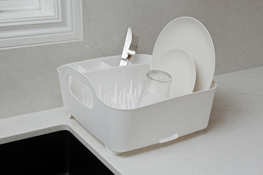Сушилка для посуды позволит навести порядок возре раковины и организовать компактное хранение.
