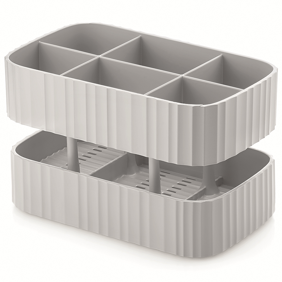 Сушилка включает 6 отделений для приборов разной длины. Изделие выполнено из переработанного пластика PET. Конструкция легко разбирается.