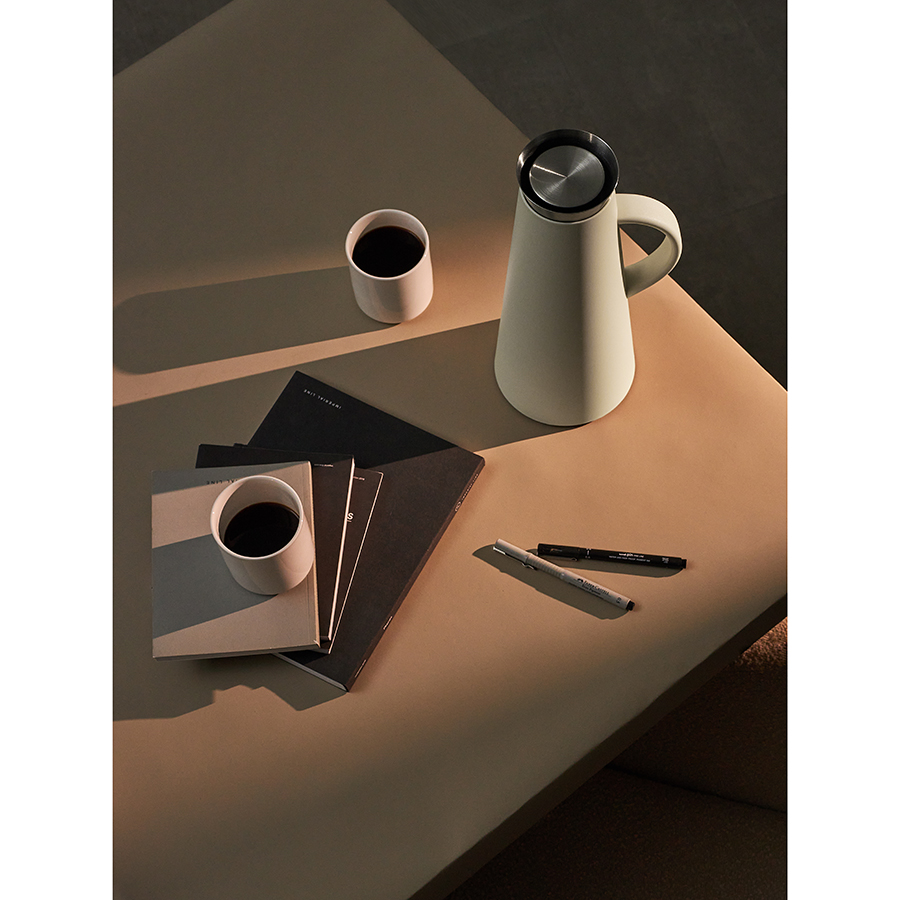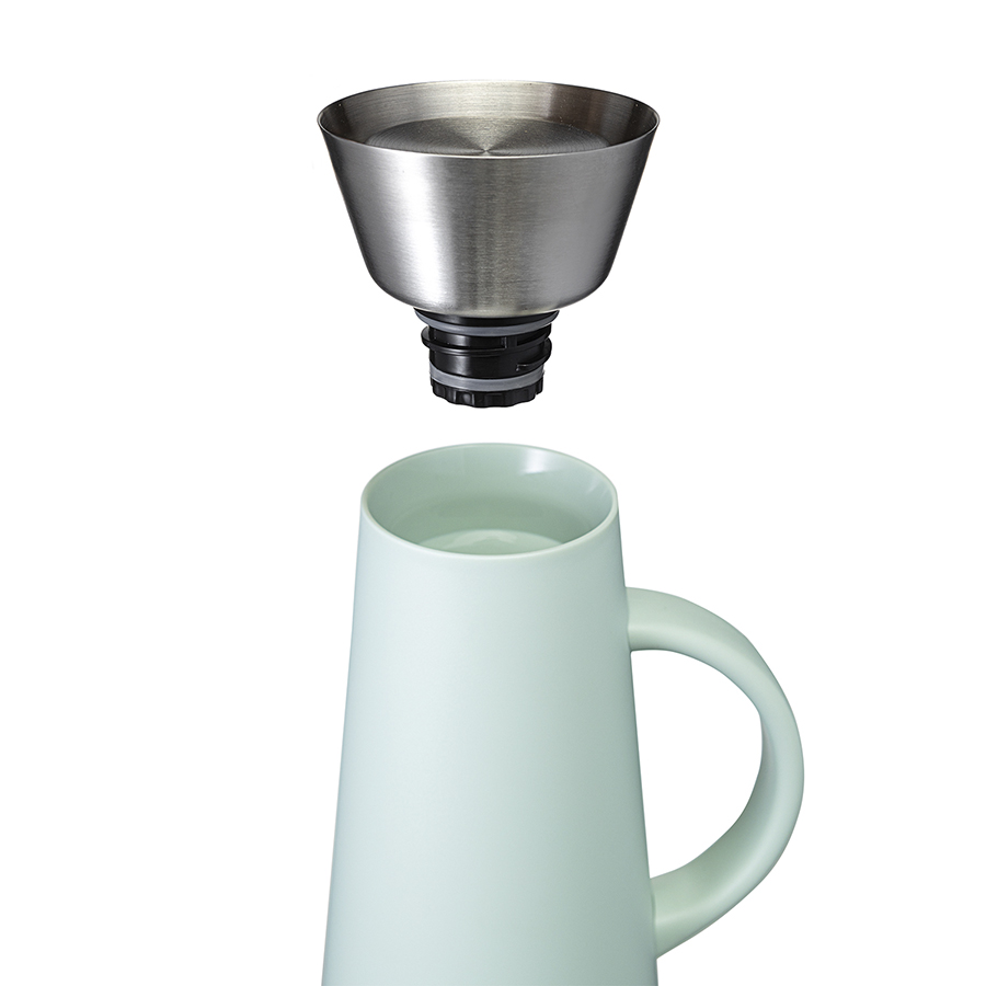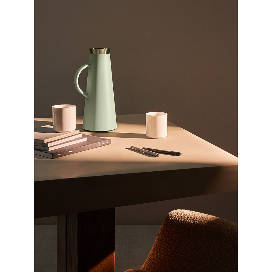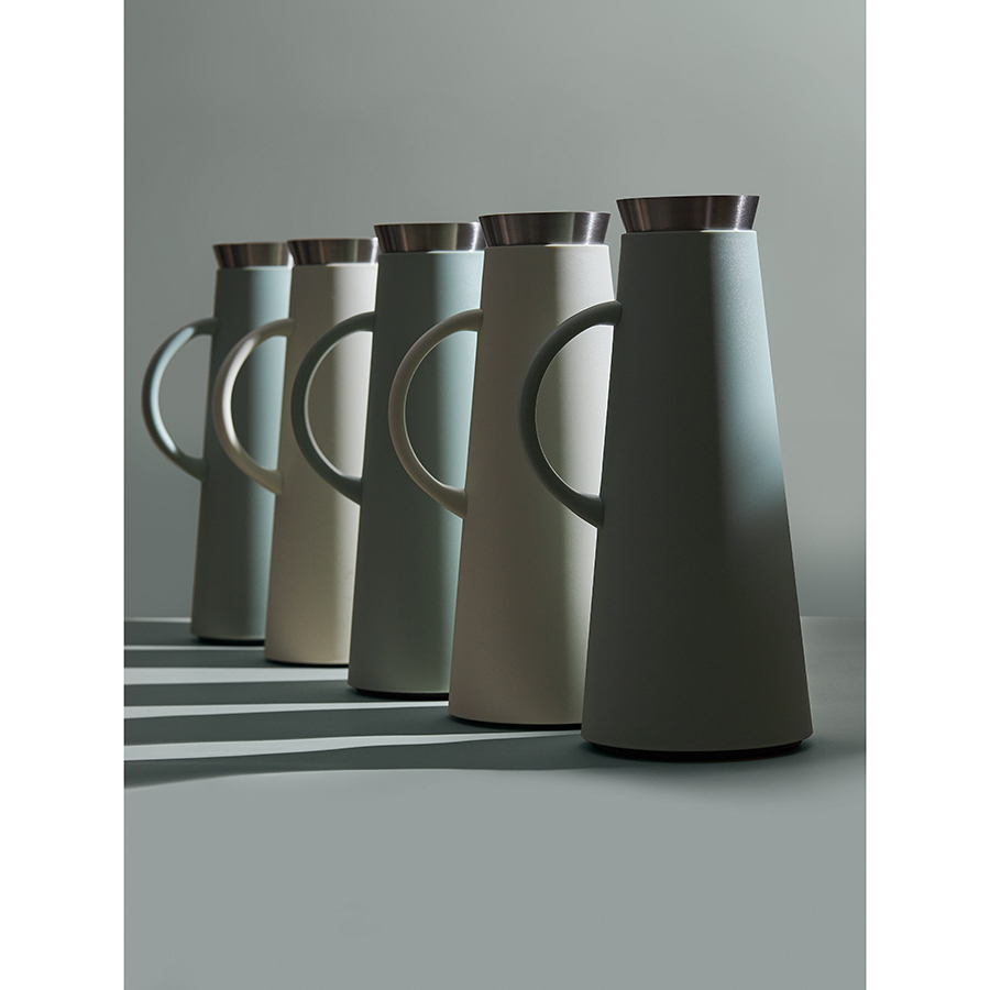 Термокувшин Zen от бренда Liberty Jones позволит наслаждаться любимыми напитками дома и на природе. От традиционного термоса его отличает конструкция со специальным горлышком с тонким краем и ручкой, что делает использование удобным даже в движении. Благодаря внутренней колбе с двойными стенками термокувшин долго сохраняет первоначальную температуру вашего чая или кофе. В течение первых 6 часов кипяток остывает до 76? (,горячая вода),.