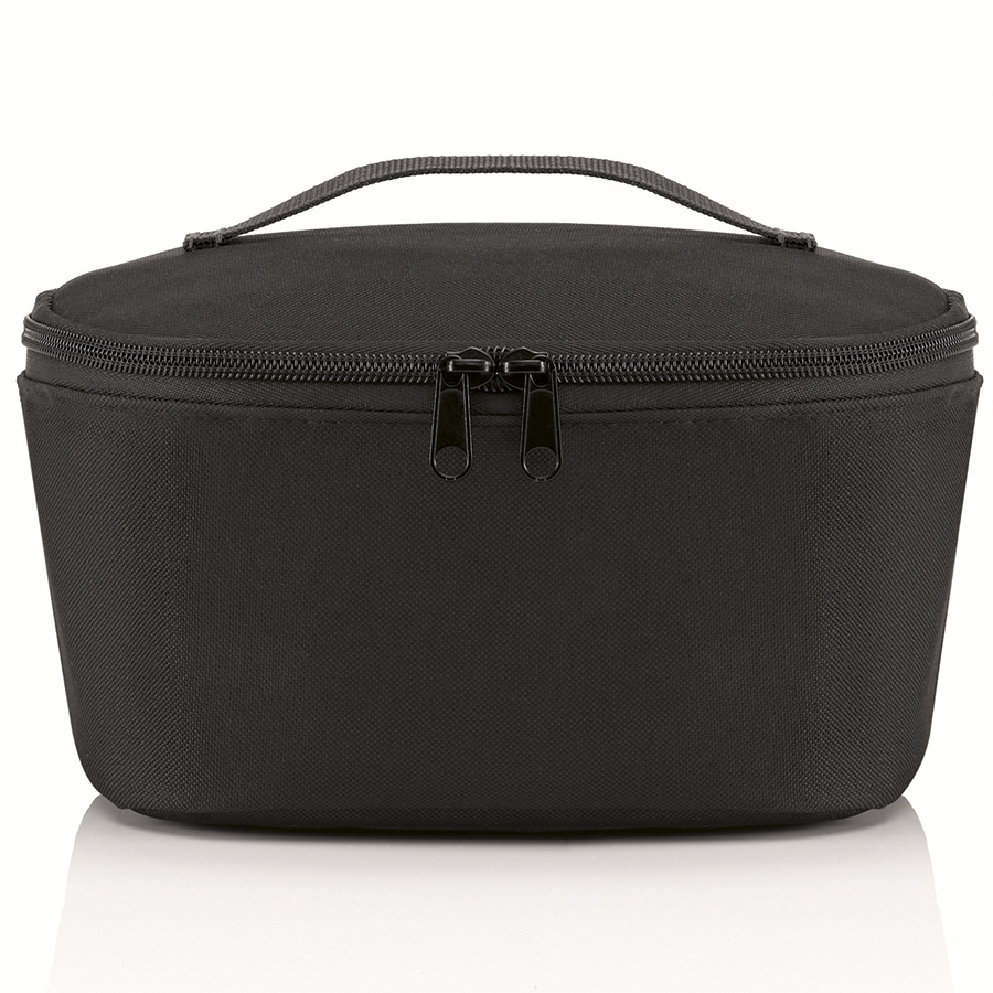 Внутри – термоизоляционный материал, который сохранит продукты в прохладе. Крышка закрывается очень плотно и застегивается на молнию. Тепловая изоляция выполнена из высококачественной алюминиевой фольги. Сумка оборудована удобной ручкой для переноски. Материал – прочный водоотталкивающий полиэстер. Объем – 2,5 л.