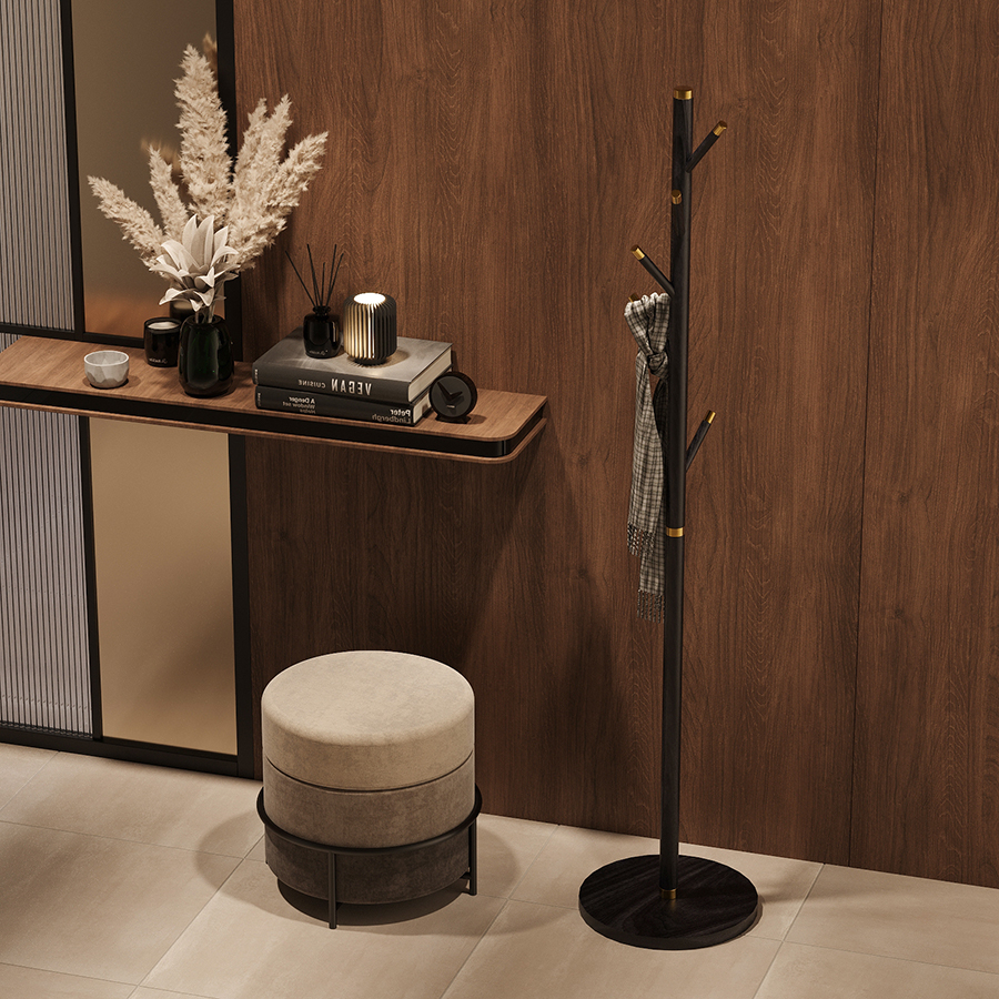 Вешалка напольная Bakken – не просто функциональный элемент прихожей, но и стильный акцент интерьера. Отсылка к природным мотивам позволяет вписать модель в различные стилевые решения, включая эко, сканди, фьюжн, эклектика и другие. Конструкция имеет прочное железное основание с хромированным покрытием, устойчивым к коррозии и внешним воздействиям. Благодаря компактности вешалка не занимает много места в помещении, подходит для малогабаритных пространств. Каждый крючок выдерживает нагрузку до 5 кг, а вешалка в целом – не более 20 кг.