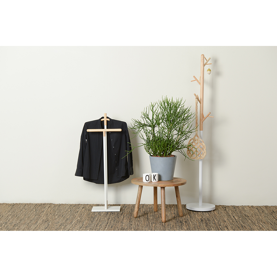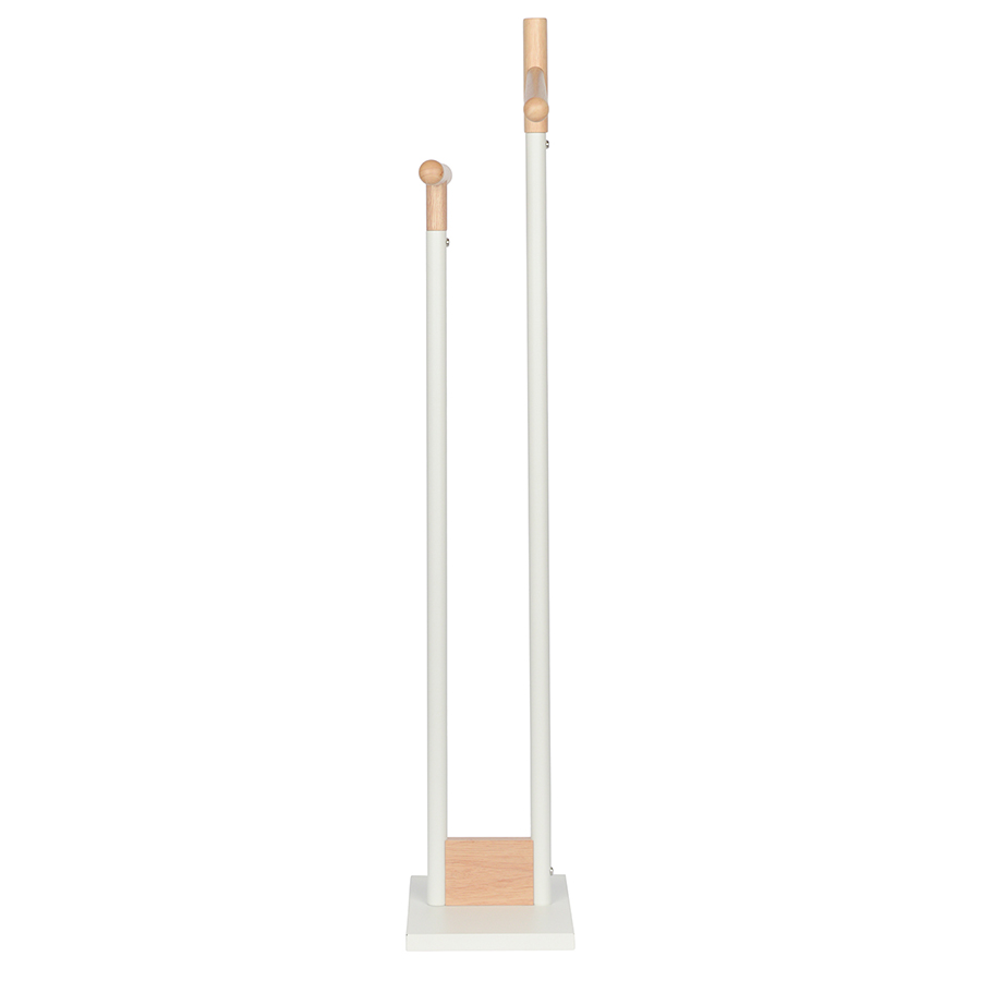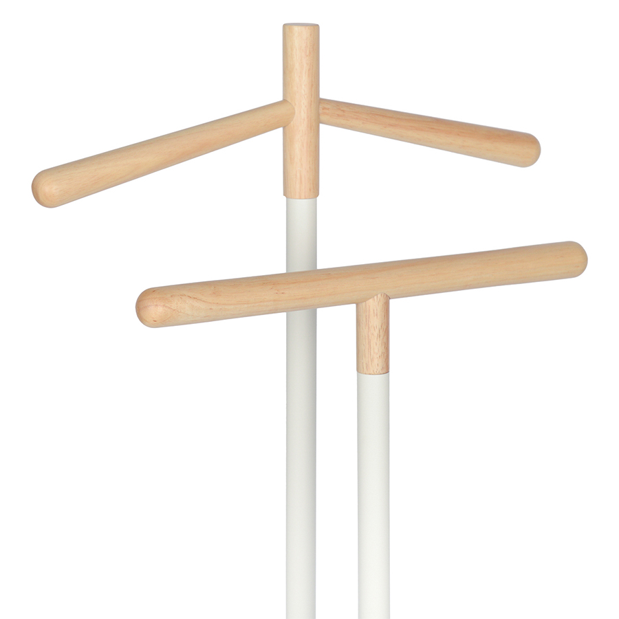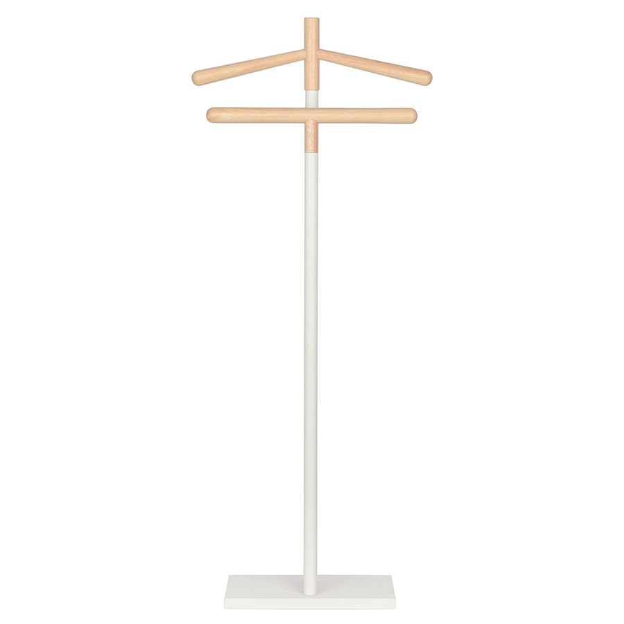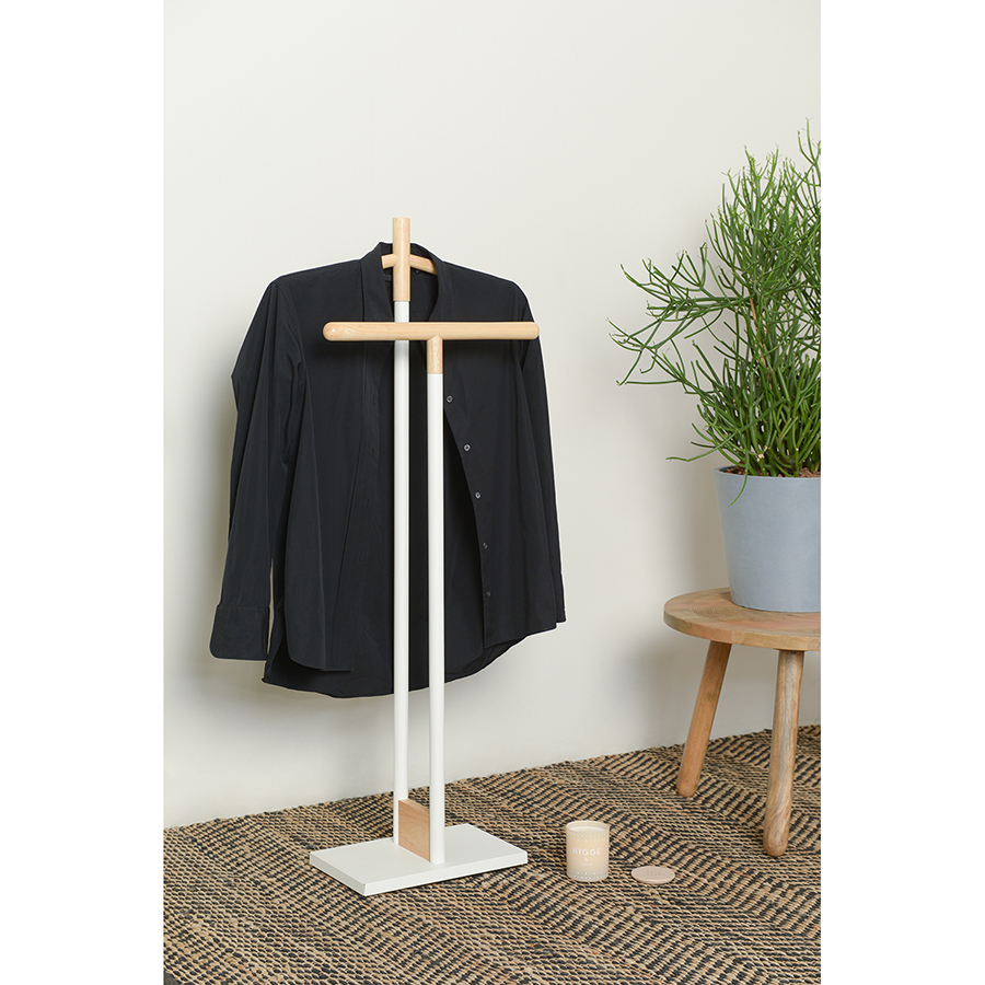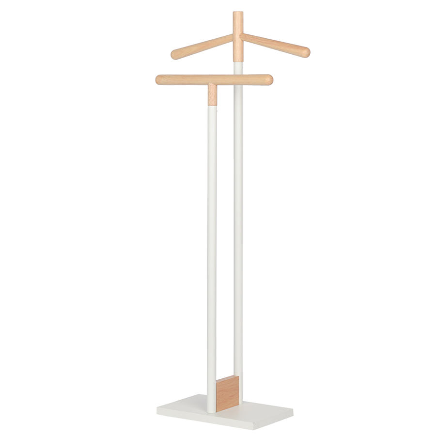 Вешалка Laficara – идеальное место для хранения костюмной пары: брюк и пиджака. Две вертикальные стойки с плечиками выполнены из стали и дерева. Прочная конструкция не занимает много места и идеально вписывается в небольшую спальню или рабочий кабинет. Прямоугольное металлическое основание обеспечивает хорошую устойчивость и не дает вешалке опрокинуться от случайного толчка.