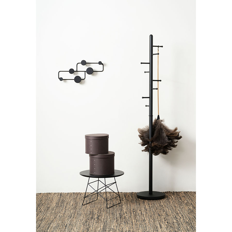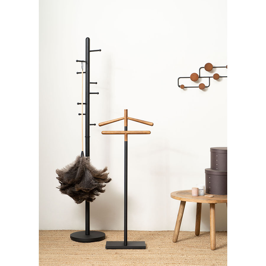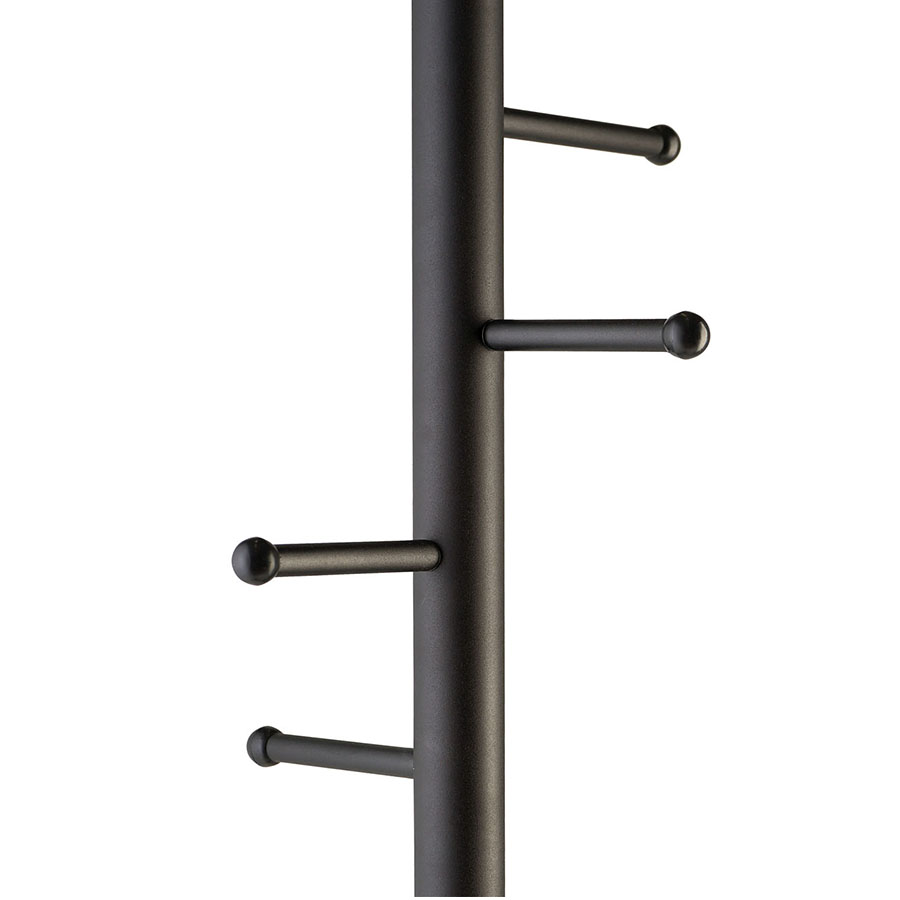 Вешалка Nicosia – стильное дополнение интерьера прихожей. Вертикальная стойка с короткими отводами вместо классических крючков выполнена из стали – верхняя часть хромирована. Прочная конструкция не занимает много места и идеально вписывается в прихожую или приемную комнату. Круглое металлическое основание обеспечивает хорошую устойчивость и не дает вешалке опрокинуться от случайного толчка.