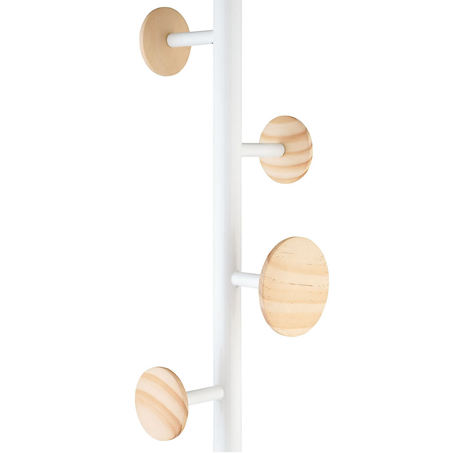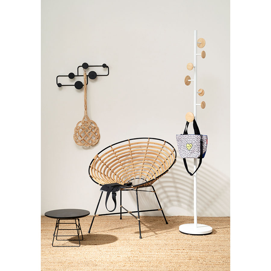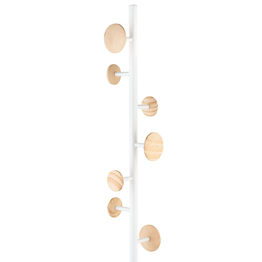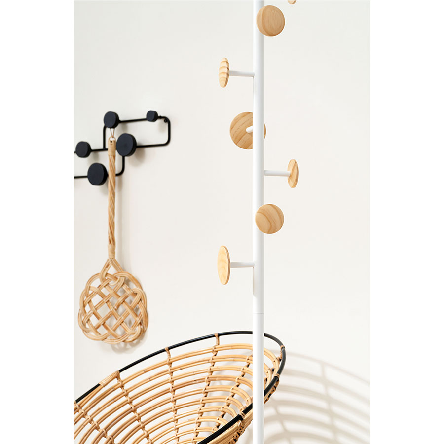 Вешалка Paletta – стильное дополнение интерьера прихожей. Теперь не нужно пришивать дополнительные петли для подвешивания. Куртки и пальто можно просто накинуть на круглые диски из массива сосны, заменяющие стандартные крючки. Прочная стальная конструкция не занимает много места и идеально вписывается в прихожую или приемную комнату. Круглое массивное основание обеспечивает хорошую устойчивость и не дает вешалке опрокинуться от случайного толчка.