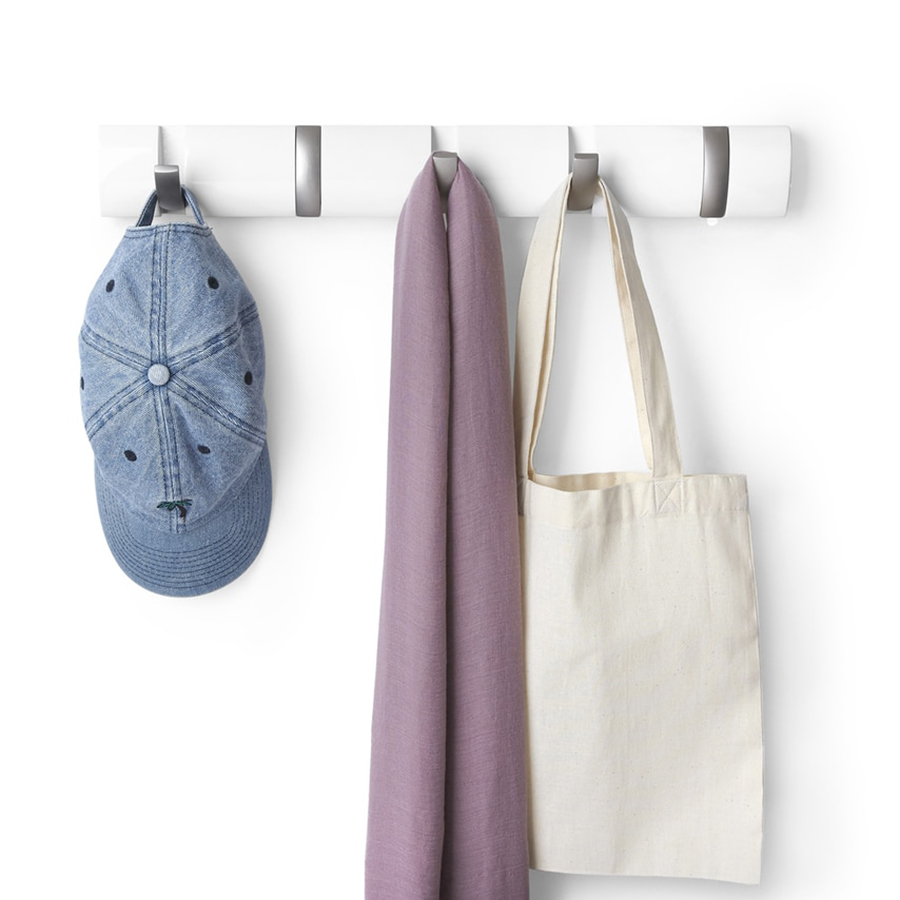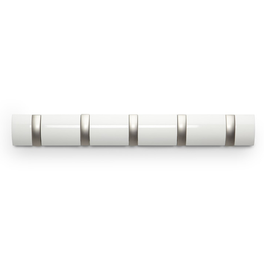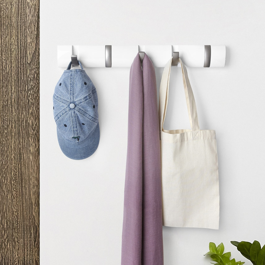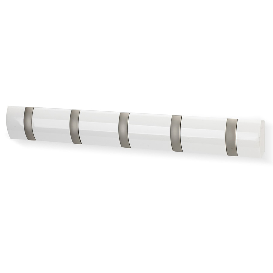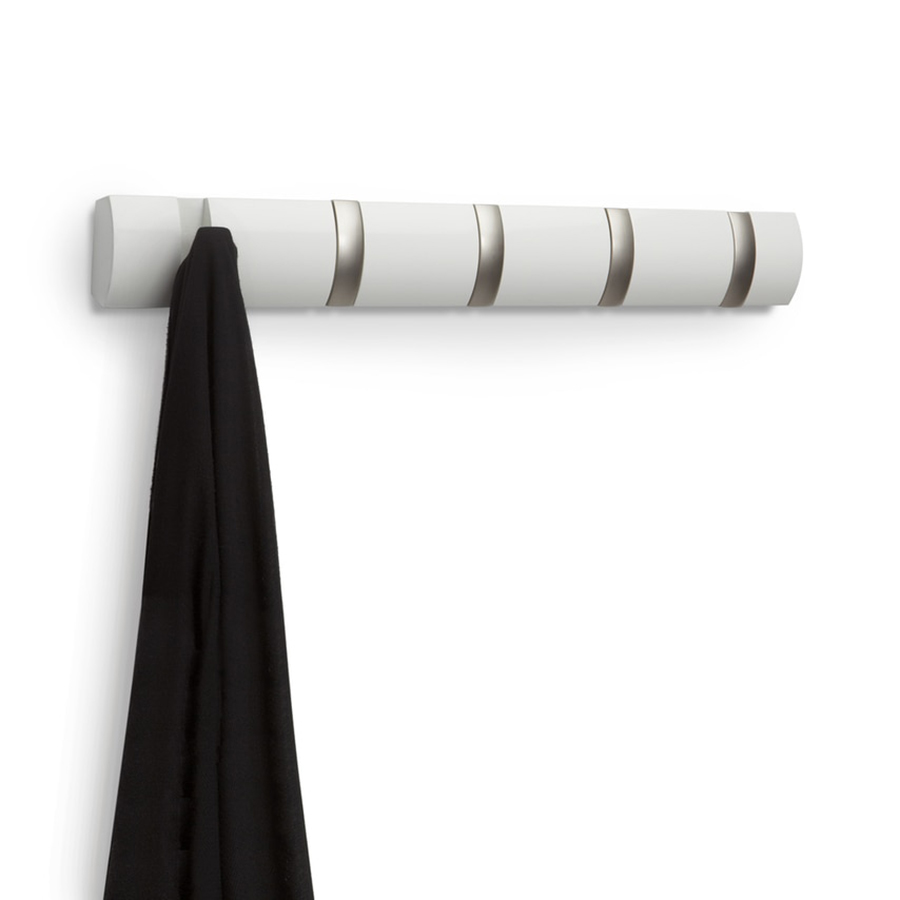 Вешалка имеет 5 откидных крючков из никеля: когда они не используются, их можно легко сложить. Каждый крючок выдерживает вес до 2,3 кг. Поставляется с подробной инструкцией по установке и необходимым монтажным оборудованием.
