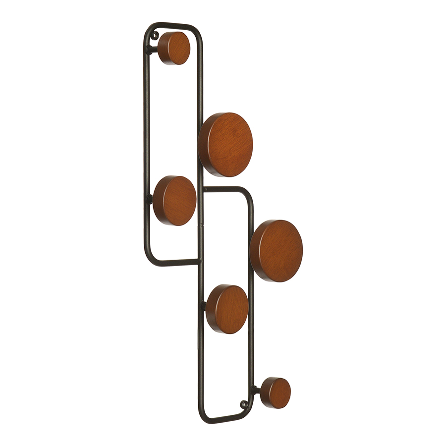 Вешалка настенная Poggio – это не только дополнительное место для хранения вещей, но и стильное украшение интерьера. Теперь не нужно пришивать дополнительные для подвешивания: куртки и пальто можно просто накинуть на круглые диски из массива сосны, заменяющие стандартные крючки. Прочная стальная конструкция не занимает много места и устанавливается прямо на стены в прихожих или любых других комнатах.