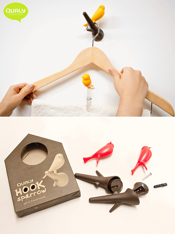 Знаменитый Воробей от Qualy! Даже самые заядлые скептики не останутся равнодушными к этим утонченным вешалкам. В комплекте две птички, надежно прикрепляемые к стене. С помощью птичек разных цветов можно создать удивительную композицию, одинаково хорошо смотрящуюся дома, в офисе, магазине или кафе.